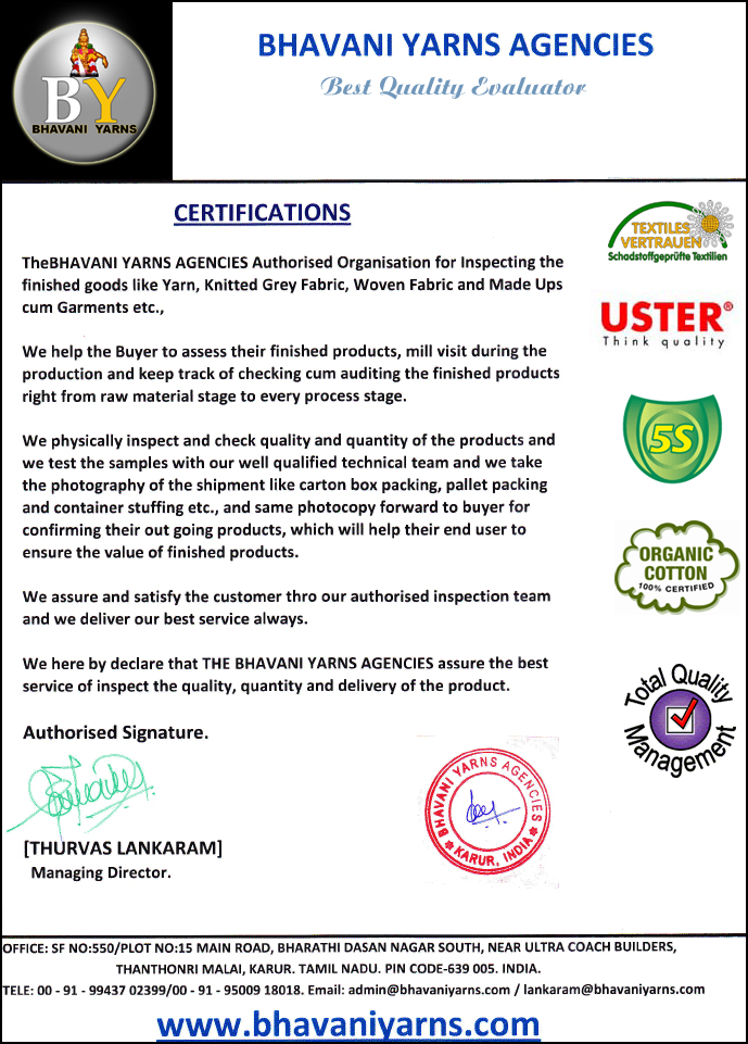 Bhavani yarns have been constantly engaged in procuring and sourcing a qualitative range of products leveraging on our advanced technical facility.